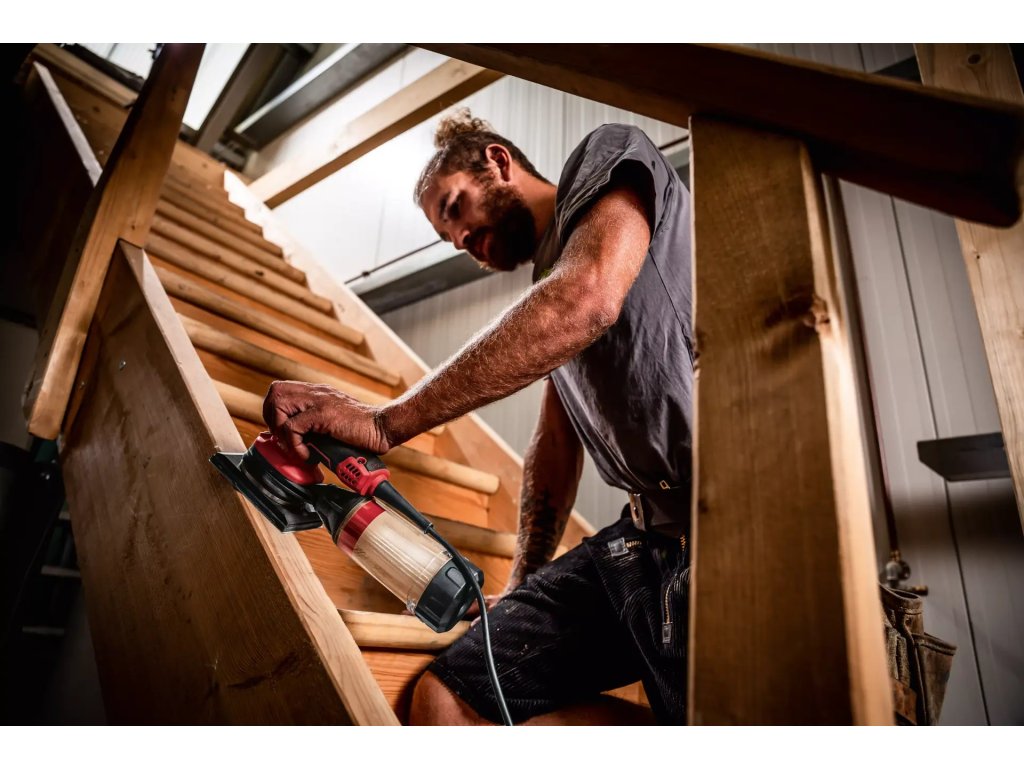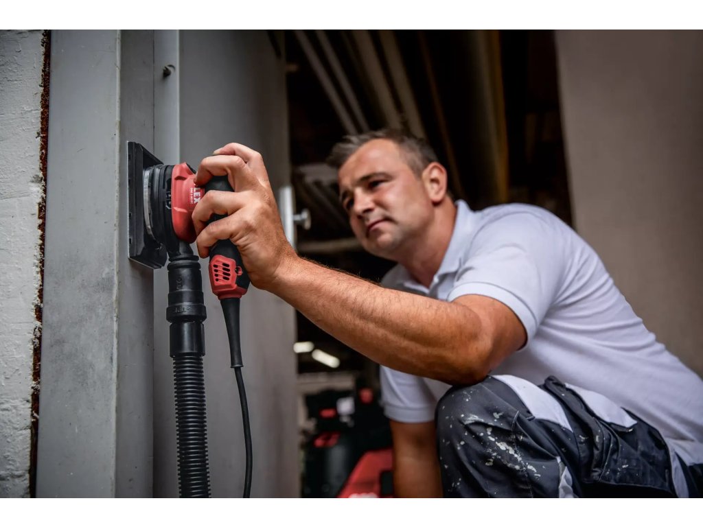Lehká, kompaktní vibrační bruska do jedné ruky, vysoce ergonomická s omezenými vibracemi speciálním vyvažováním pro neúnavnou a klouby šetřící práci