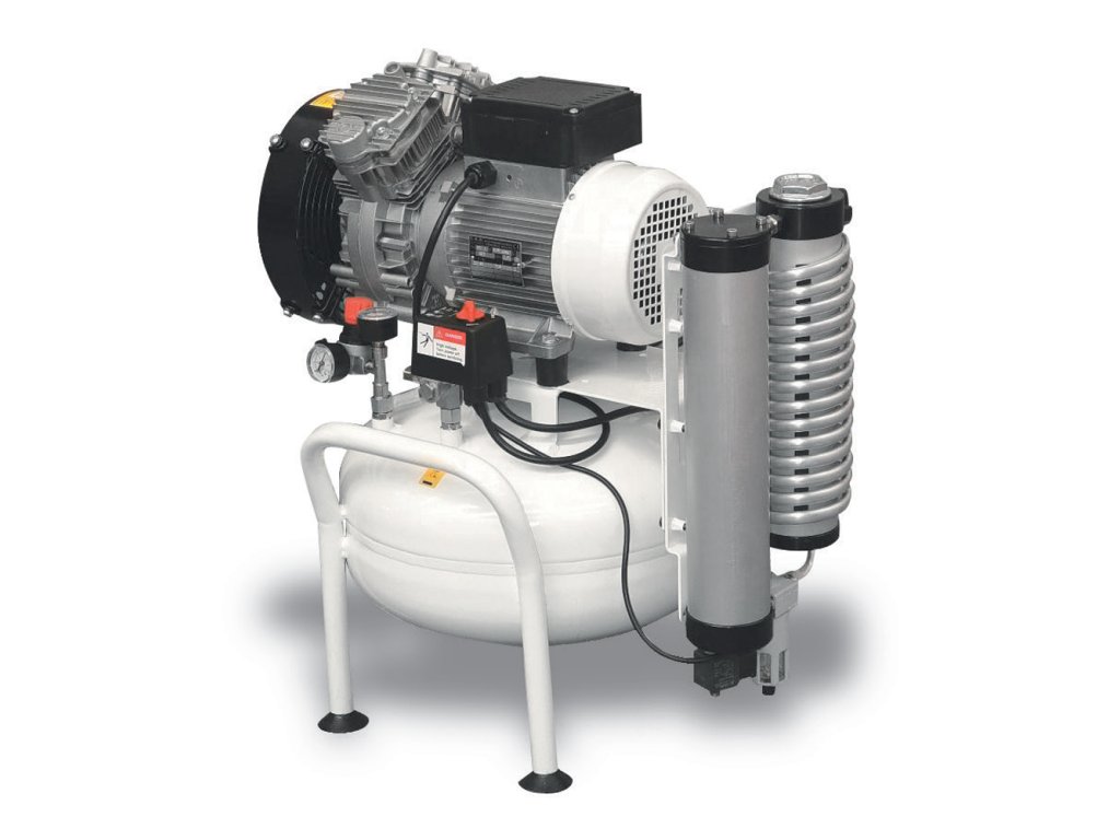 Bezolejový pístový kompresor s výstupním tlakem 8 bar určený pro stomatologické ordinace a aplikace s potřebou bezolejového vzduchu. Stacionární provedení s příkonem motoru 1,5 kW vhodné pro 1-2 zubařská křesla se vzdušníkem o objemu 25 litrů.