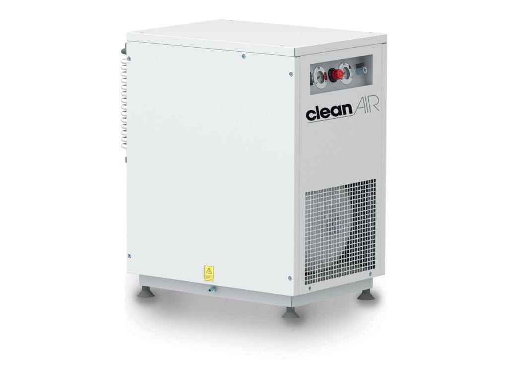 Kompresor z řady Clean Air v bezolejovém provedení s přímým spojením elektromotoru s kompresorovou jednotkou CLR 15 se sacím výkonem 350 l/min je určený pro zubařské ordinace s 1 až 2 křesly a pro všechny menší aplikace s potřebou zcela bezolejového vzduchu. Provedení se zvukotěsnou skříní s odhlučňujícími panely redukující hluk ze stroje na minimální úroveň. Kompresor disponuje následujícími benefity a standardním vybavením: