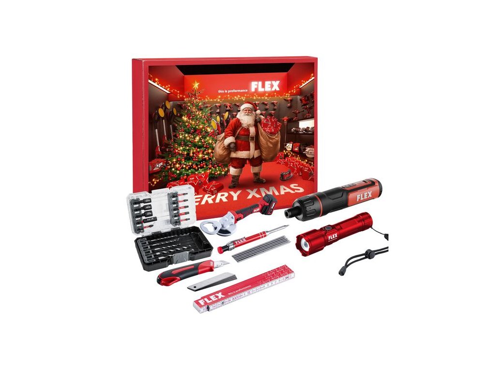 Adventní kalendář 2025 s akumulátorovým šroubovákem 4 V, rozsáhlou sadou bitů a vrtáků a limitovanou edicí ručního příslušenství FLEX.