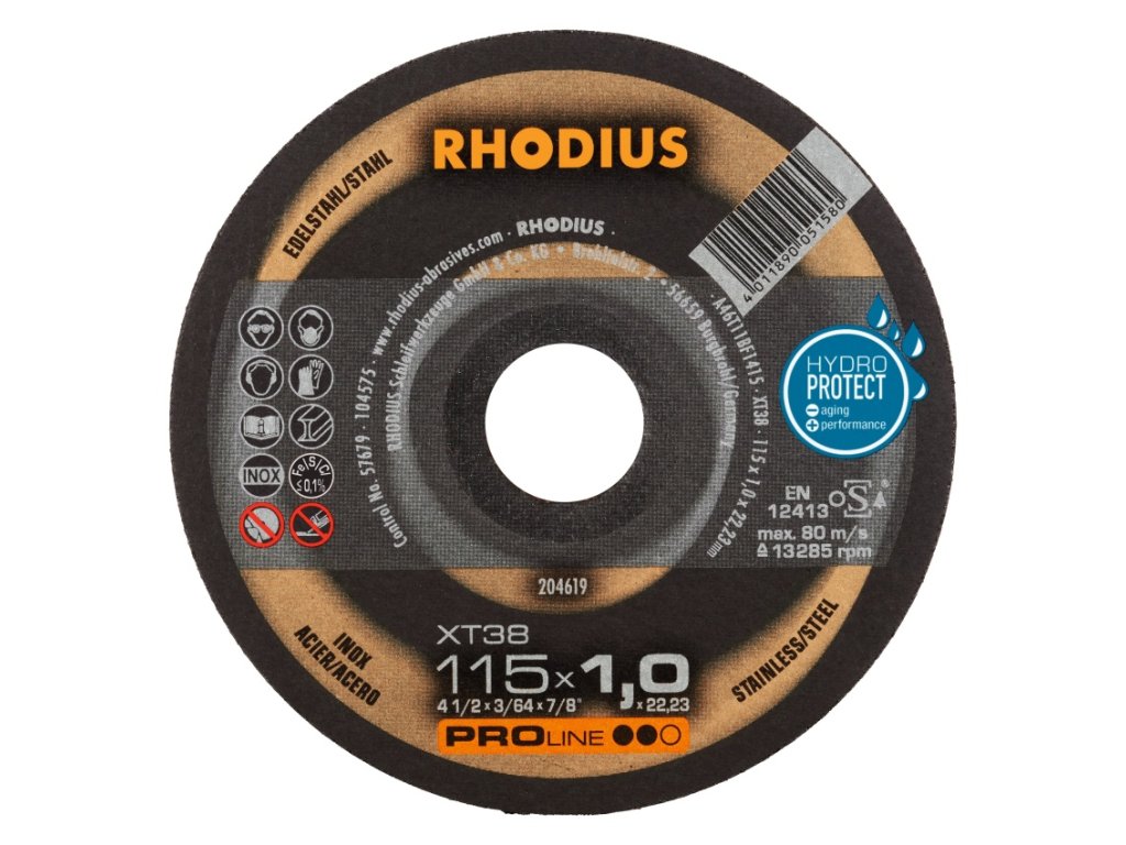 Brusný kotouč Rhodius XT38, řezání, průměr kotouče 115 mm, tloušťka 1 mm, průměr otvoru 22,2 mm, kotouč velmi tvrdý